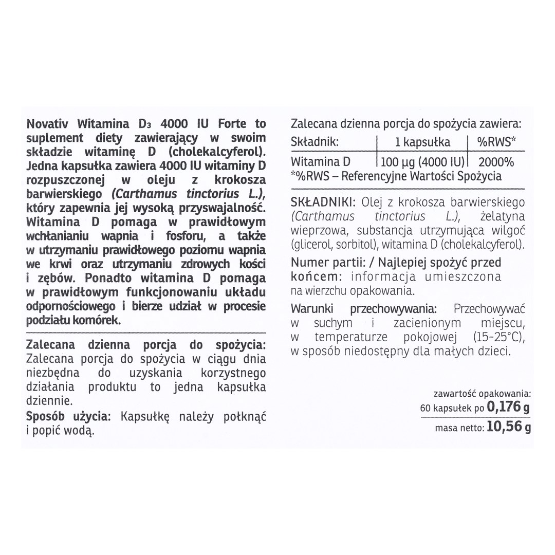 Novativ Vitamine D3 Forte 4000 UI Forte 60 gélules